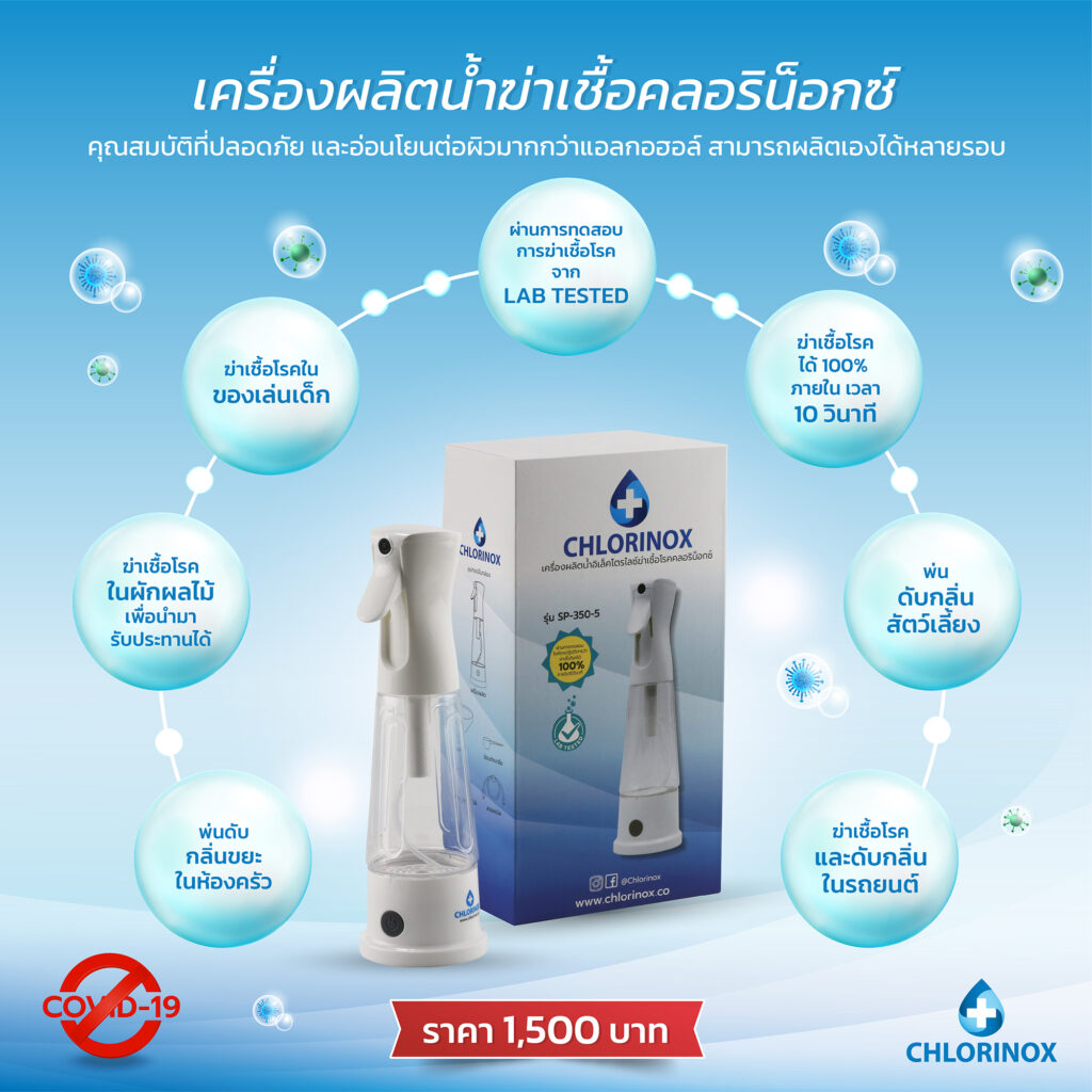 น้ำฆ่าเชื้ออิเล็กโตรไลซ์คลอริน็อกซ์ เป็นอีกทางเลือกหนึ่งสำหรับผู้ที่ต้องการความอ่อนโยน สะอาด และปลอดภัย เราขอแนะนำเครื่องผลิตน้ำอิเล็คโตรไลซ์ Chlorinox (คลอริน็อกซ์) ผลิตได้ง่ายๆที่บ้าน เพียงแค่ใช้น้ำสะอาดกับเกลือเท่านั้น ก็สามารถฆ่าเชื้อโรคได้ทุกที่ ทุกเวลา